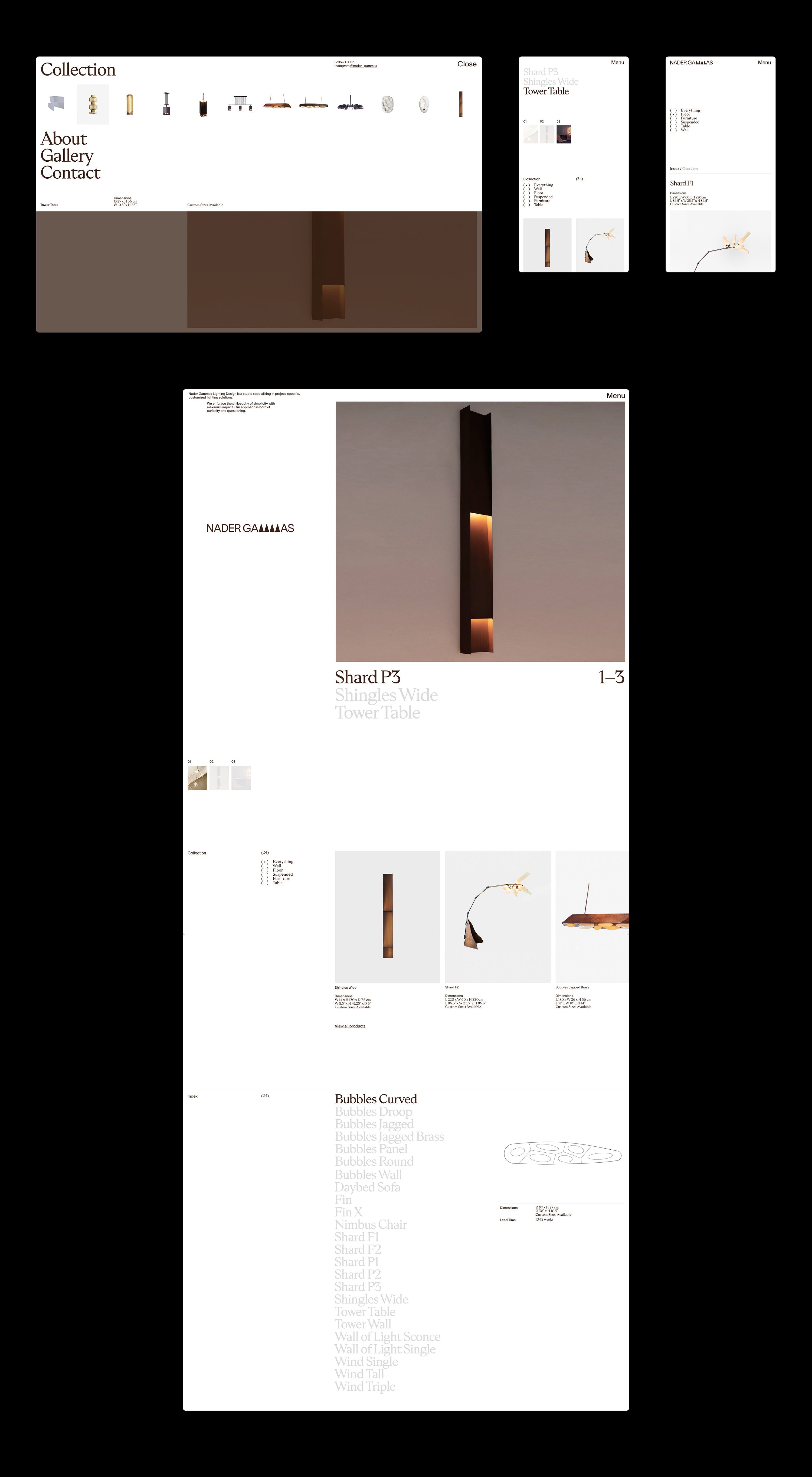 Alongside his new visual identity, we developed a dynamic website to showcase Nader Gammas' varied works across desktop and mobile. Seamlessly blending form and function, our digital platform provides an immersive experience for visitors to explore the brand's offerings.